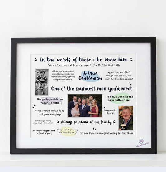 In the words of those who knew them - Personalised Condolences Frame